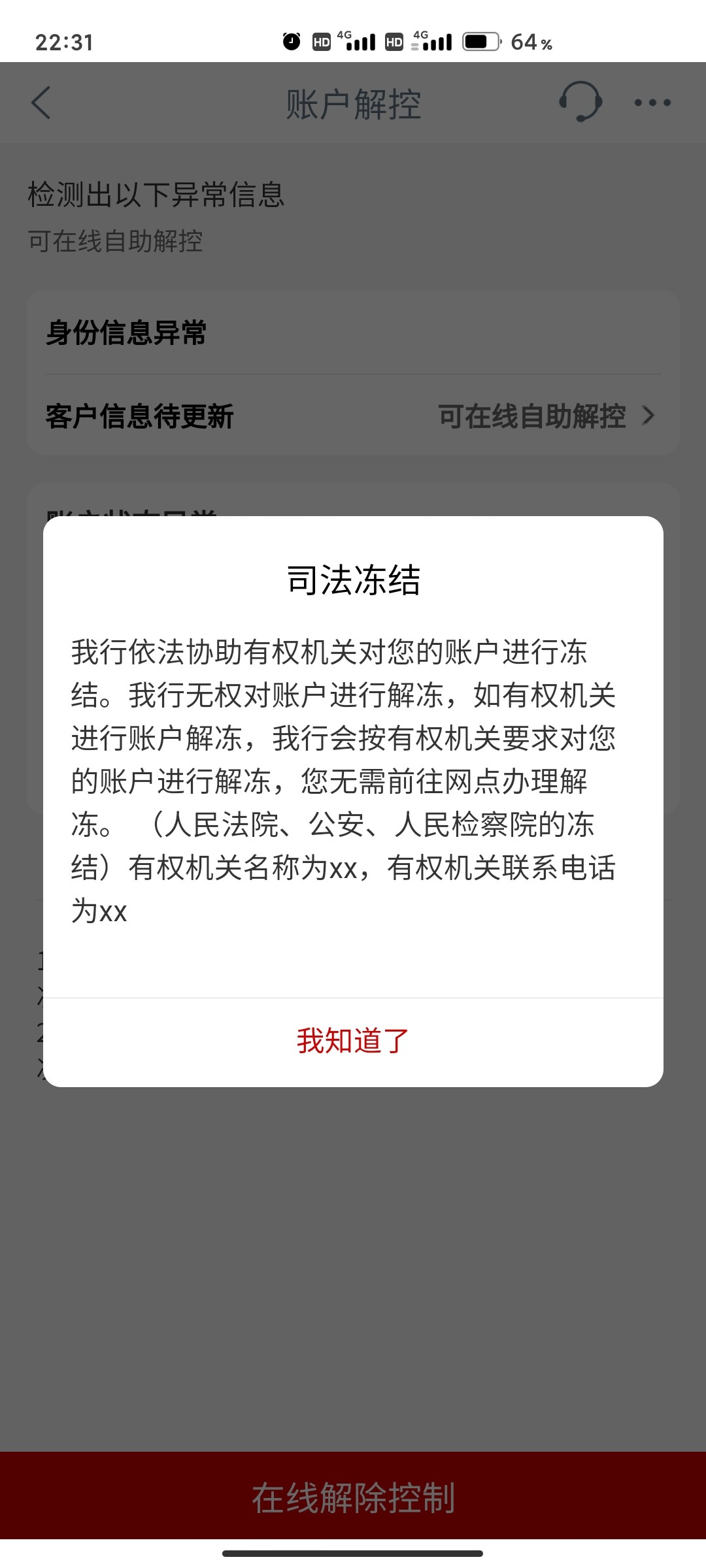 w0622yt 银行卡和支付宝都被异地冻结了有没有什么方法解