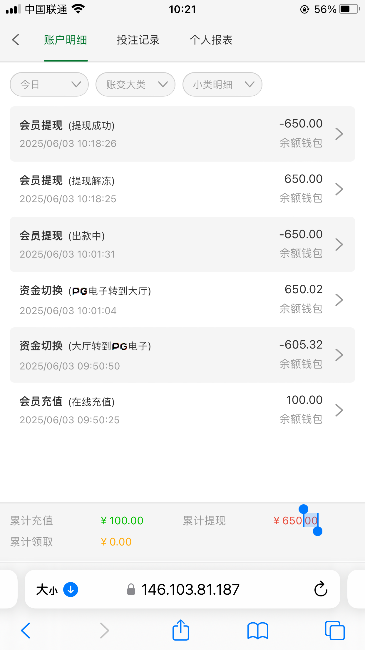 冲了100打到400提现中,等到账