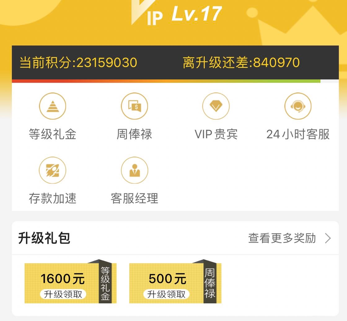 84w的流水,就给1600的等级奖金,这多划不来,84w流水按照最低的抽水打桌面游戏,也要0.5个点的抽水,打电子一般在3-8个点抽水,打街机在3-5个点的抽水,只有玩桌面游戏才保得住你的本金吧?关键是很多网站对桌面游戏打的流水不算有效流水吧?