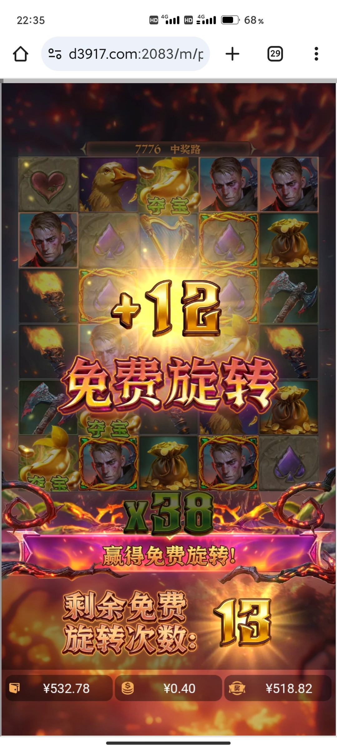 我也是盛大这个游戏,四十多彩金,四毛的一个一千倍一个两千倍,出1200
