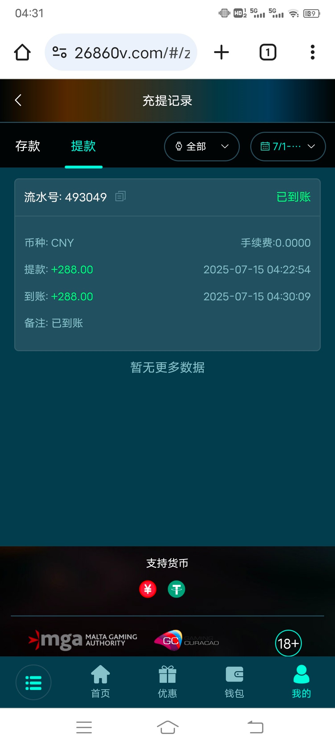 这是以前皇马平台  以小博大很难出  这个活动不是分分钟出了嘛  本来我还以为不会出的 结果几分钟就到账了