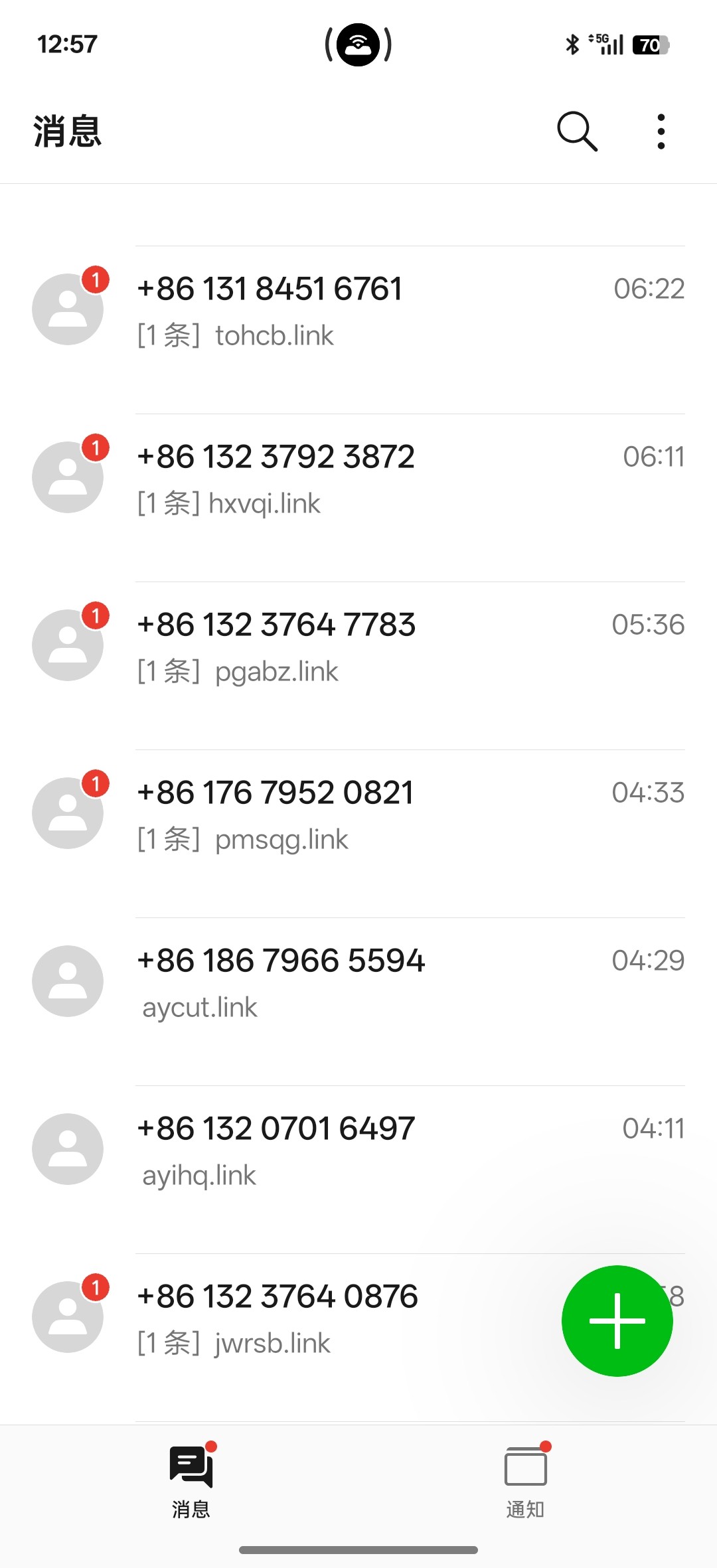 最近被江西短信给轰炸了,一天几十条全是狗庄链接,从早到晚发短信,就发一条链接,这是狗庄统一发的短信吧?以前没有就是最近几天老是江西那边手机号发的短信