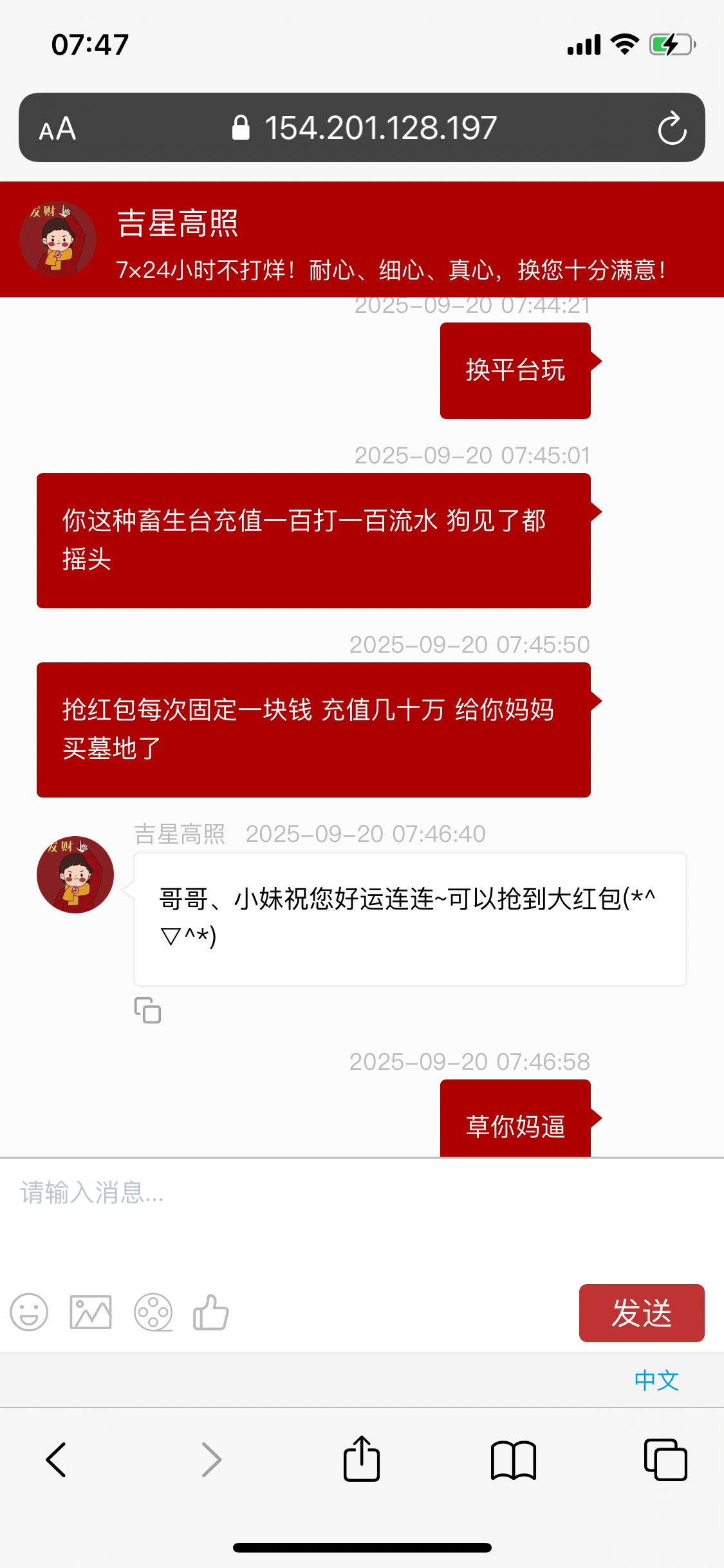 老哥们回归正常生活吧!早上起来吃早餐刷到金沙990有人领了 站内信单笔充值5k领888 我就去找试试我玩的这个773能不能领 我单笔充值的是3万 去年到现在充值90万+快100万 抢红包依旧固定一块钱 出一些傻逼活动 估计是没人充值了 现在每周一凌晨抢红包 12.00 1.00 2.00 把老哥们智商摁地上摩擦