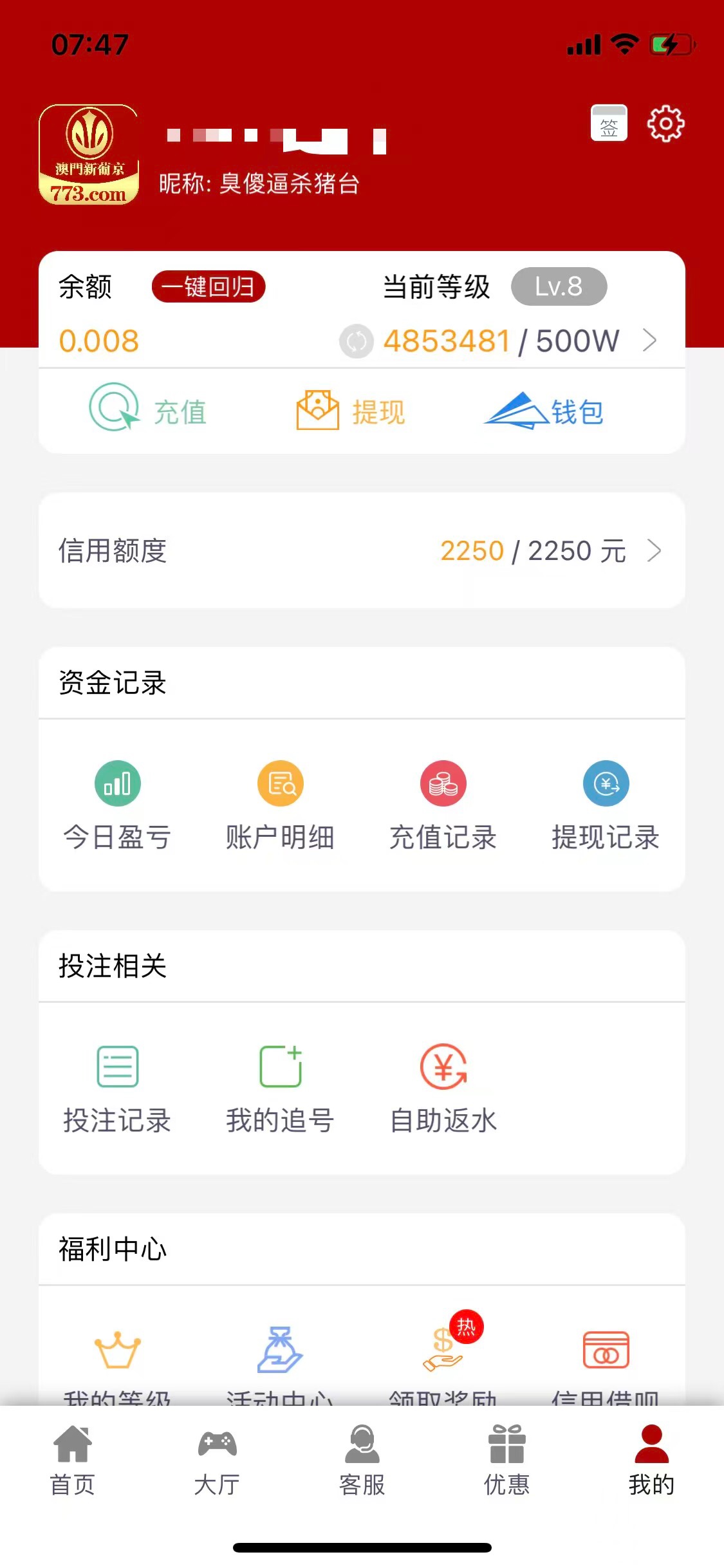 我773也是单笔最高存款1w,他说新出的平台,并没有出钱能女神的活动,所以领不了