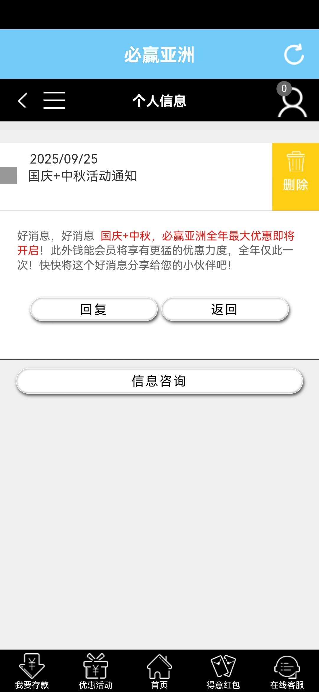 ozz333 想屁吃,每天三波红包,1号,6号登录彩金。1月到9月总存款。