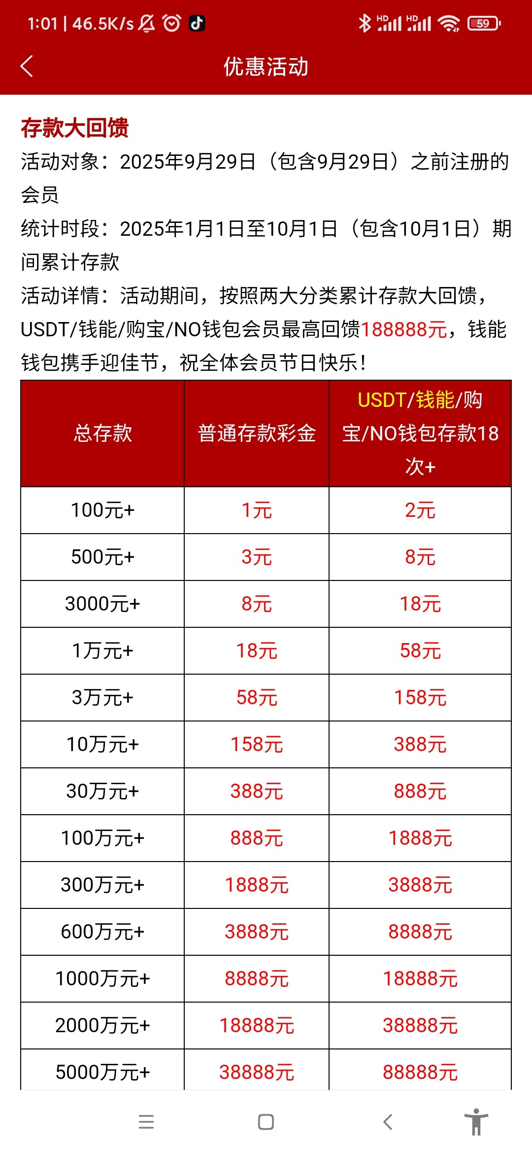 想屁吃,每天三波红包,1号,6号登录彩金。1月到9月总存款。