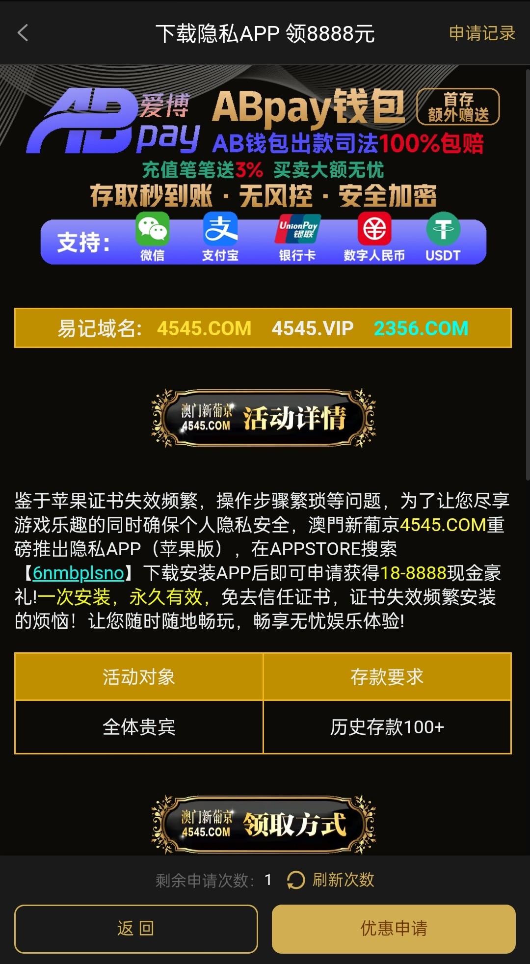 老用户有号且历史充值过100+去申请这个18彩金,没有充值过的直接无视即可无视即可,具体自测