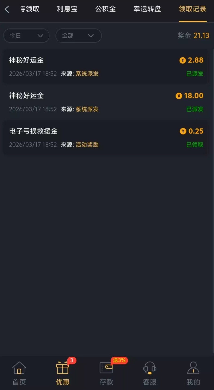 他妈的今日充值一百才能领取