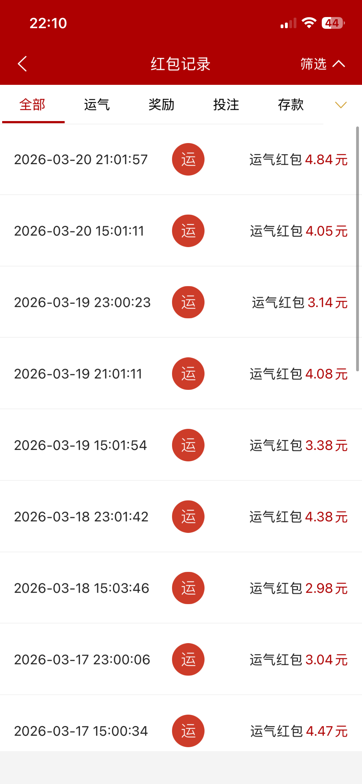 我最多就是节日的时候的运气红包给二十几块了。
