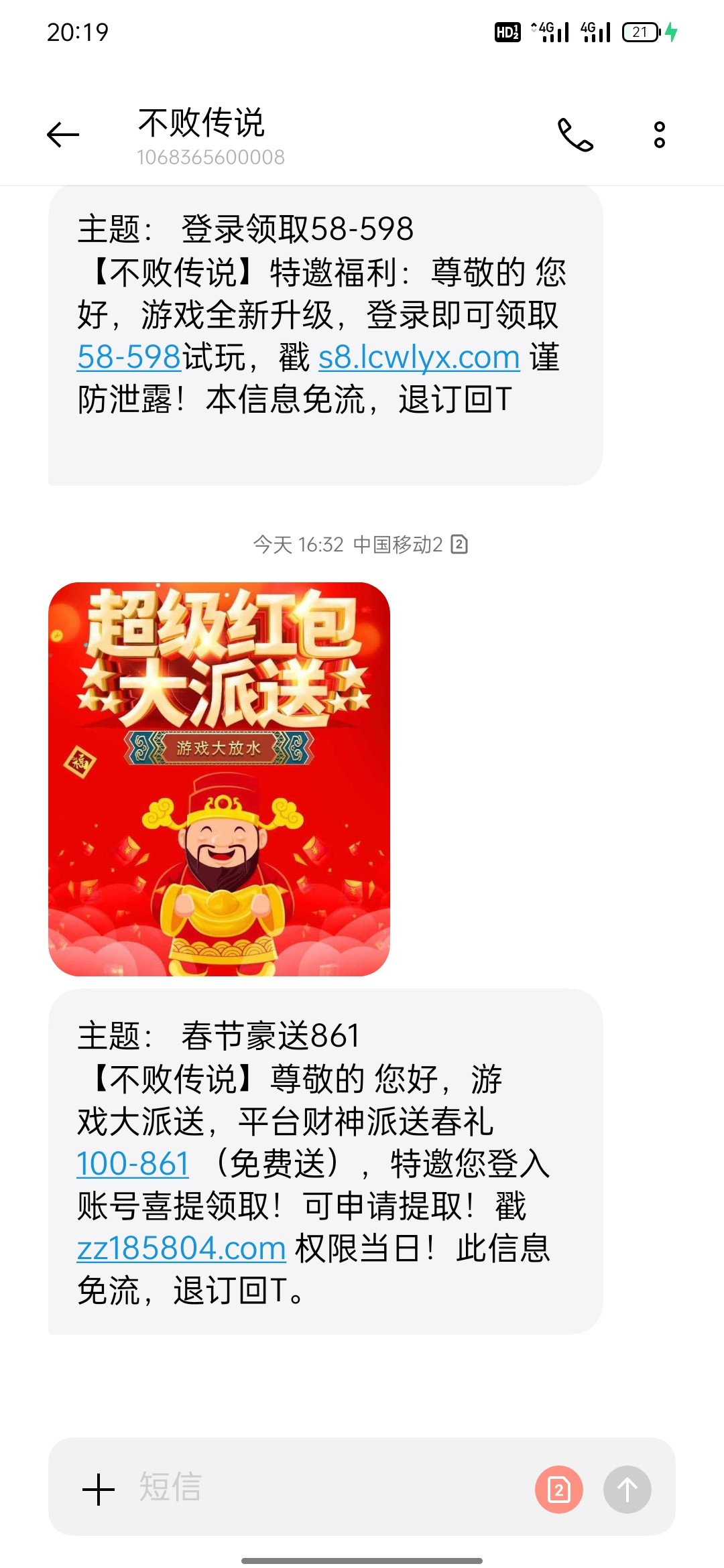 这种彩信我收到的特么都是假的,只有别人发的才送,真的无语了