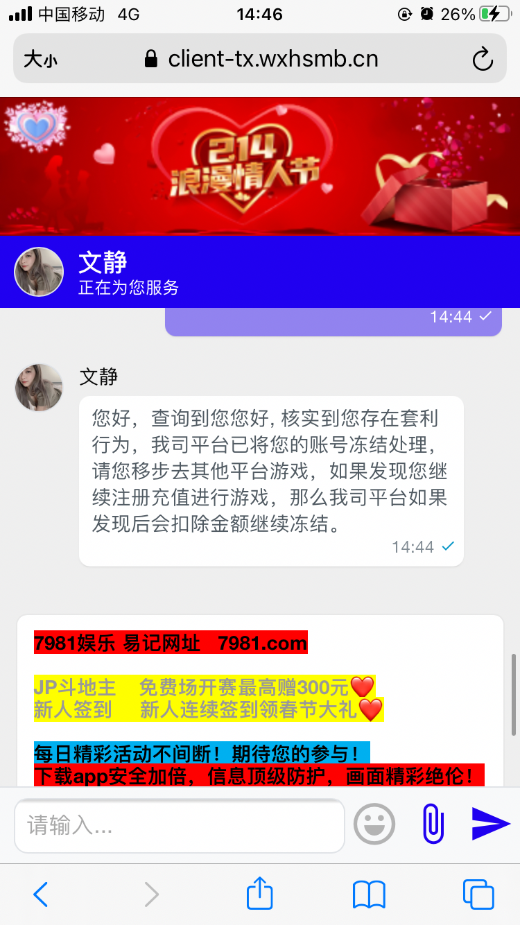 您好,查询到您您好, 核实到您存在套利行为,我司平台已将您的账号冻结处理,请您移步去其他平台游戏,如果发现您继续注册充值进行游戏,那么我司平台如果发现后会扣除金额继续冻结。