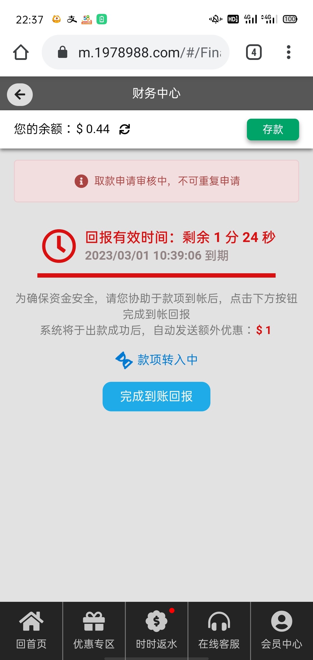 半个小时了提现还没到