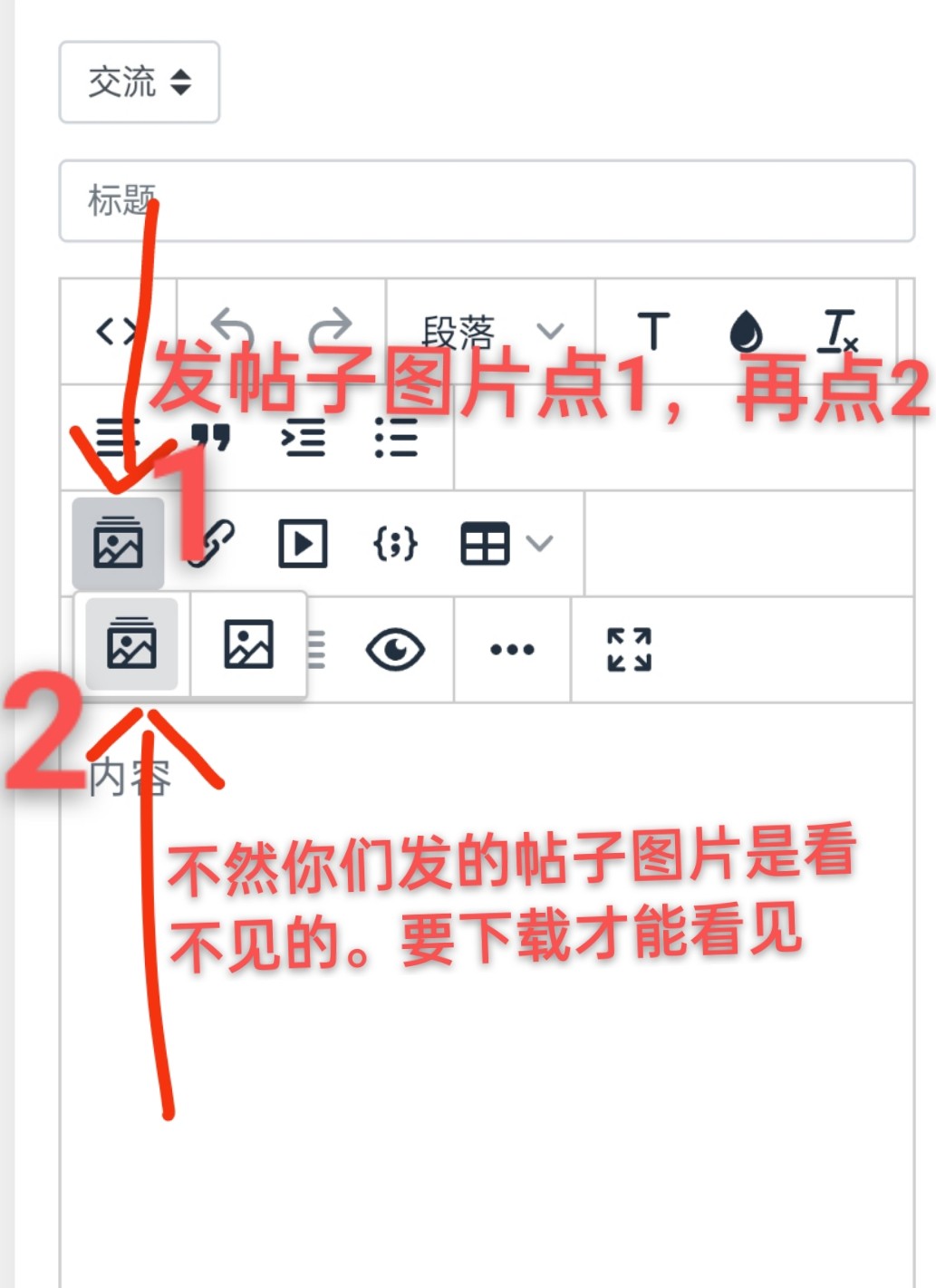 看图看图,我发现好多帖子图片都是看不见的,要下载才能看见,是因为你图片上传的是文件格式。