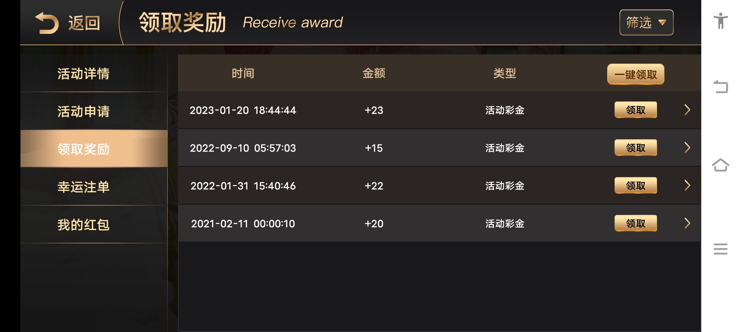 我靠好多彩金没领全没了