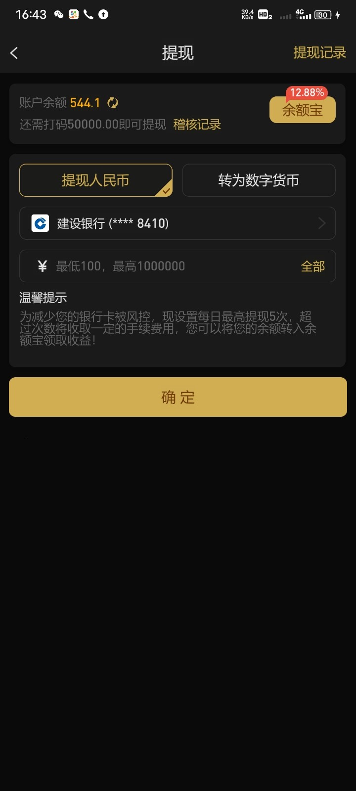 充值100,提500,被退回,正常玩的,被罚五万流水过了一会就被封号了