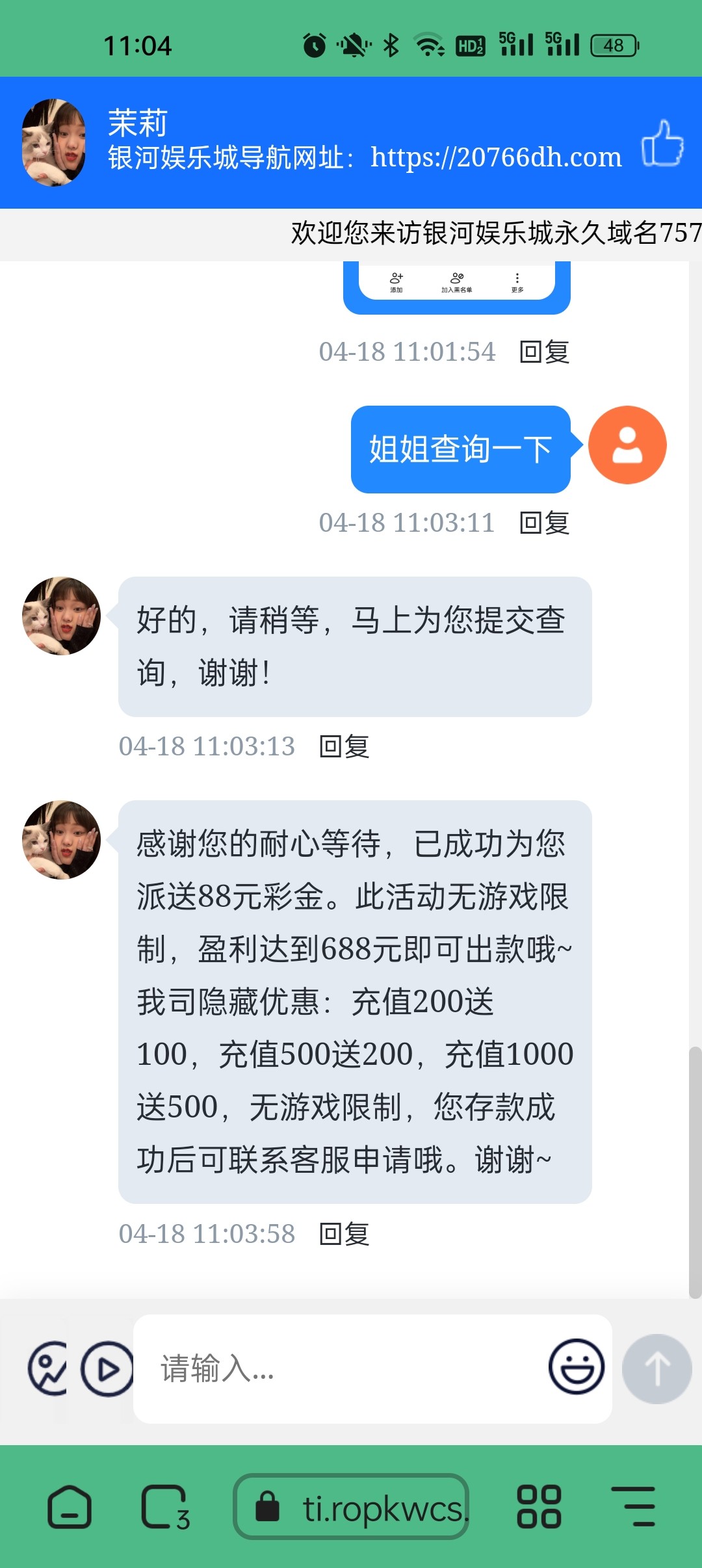 碰瓷给手机号客服送58