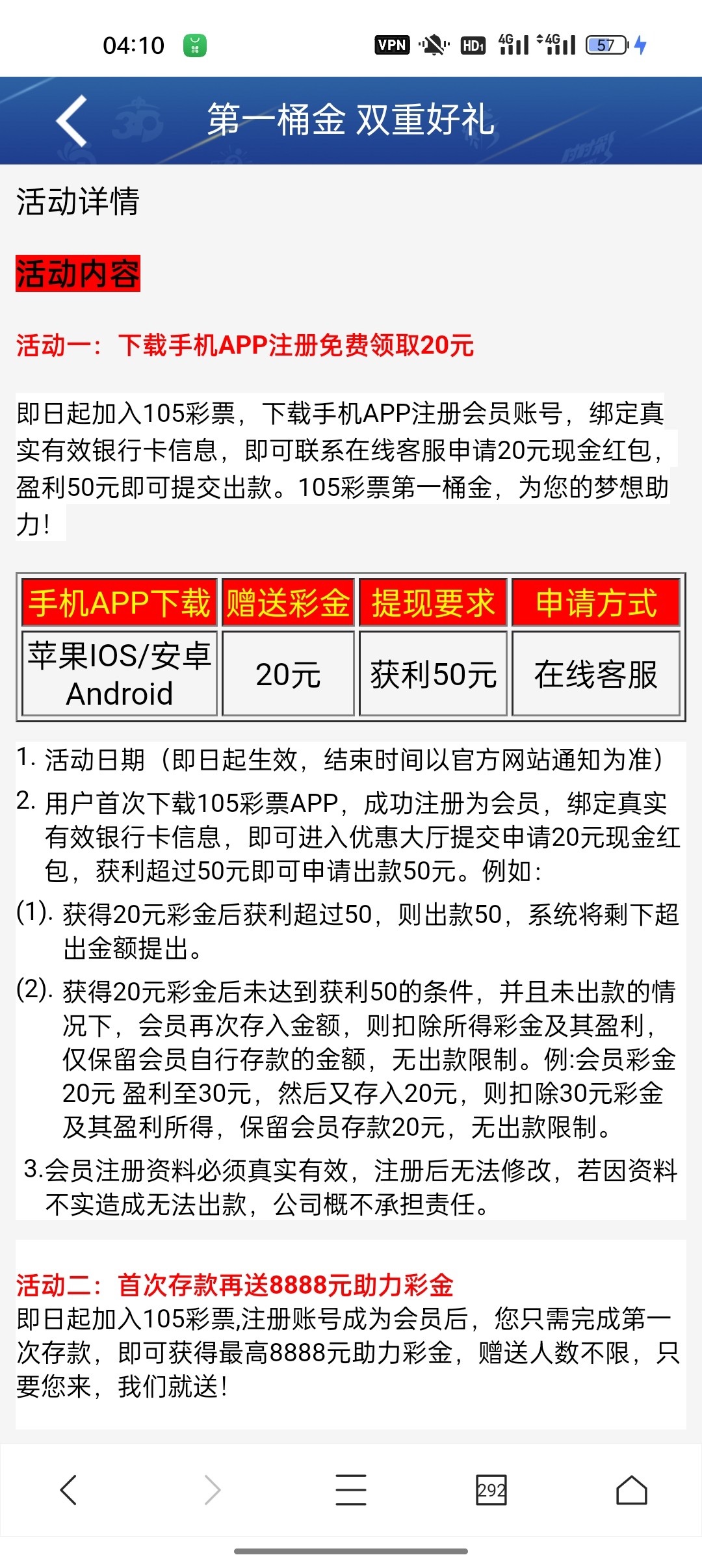 新用户注册绑卡下载app,找在线客服申请20彩金!