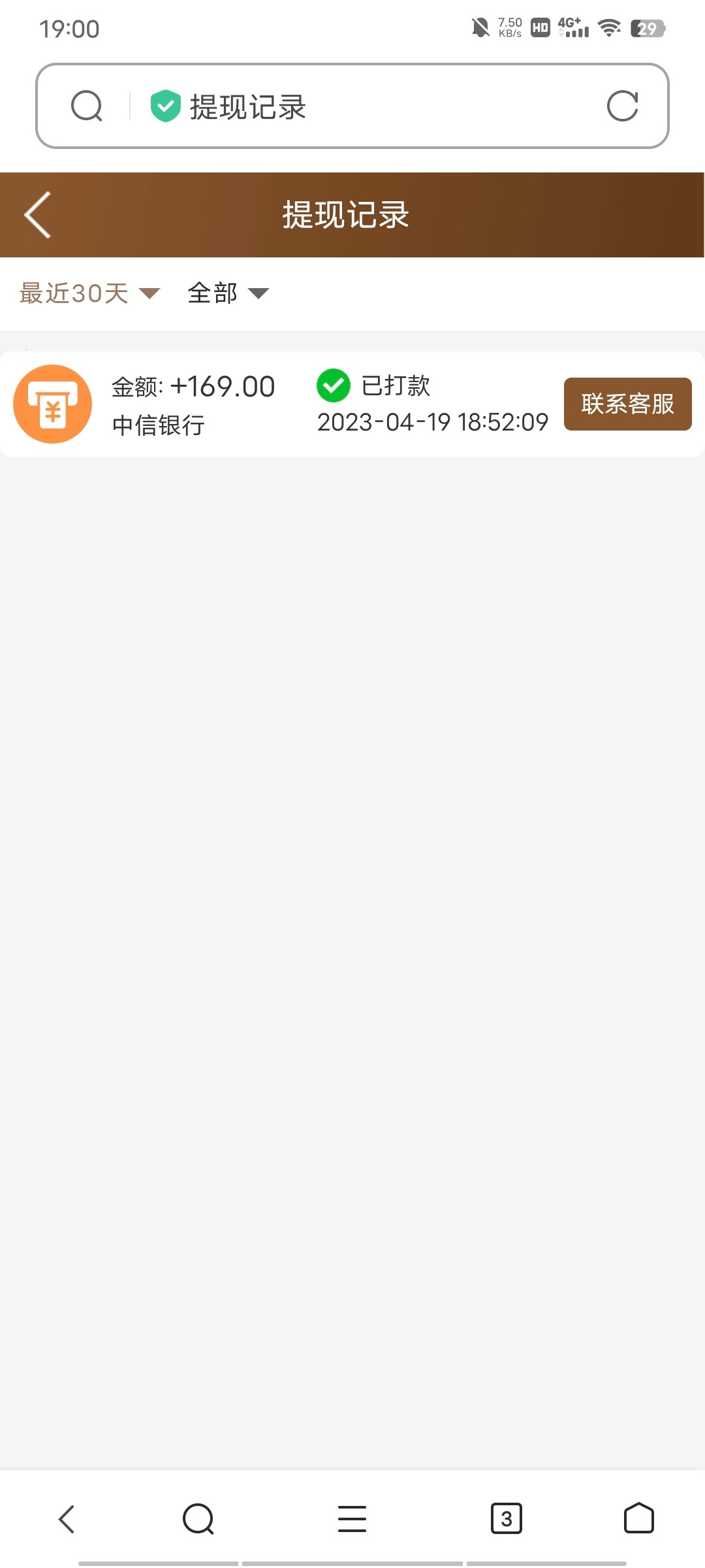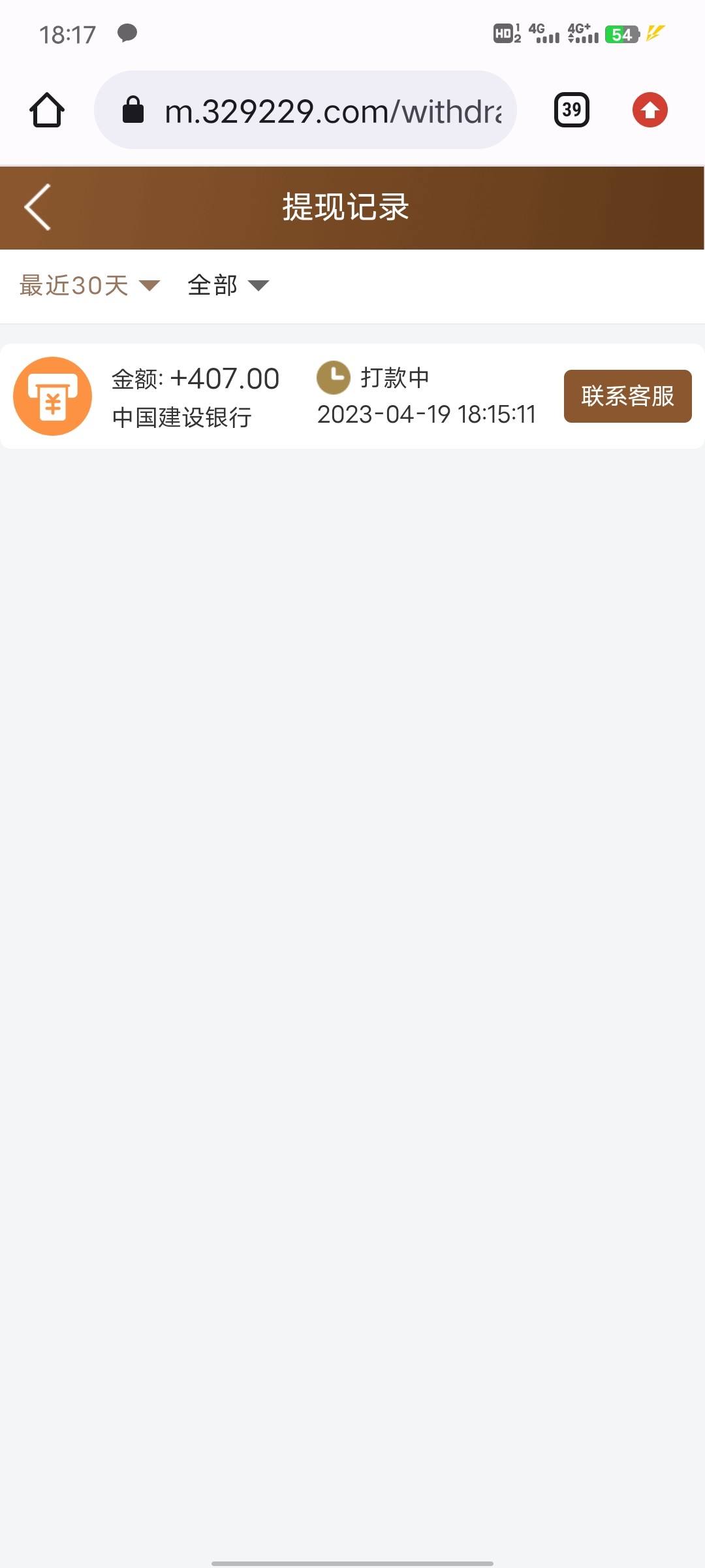 提了137,打款中,不知道要多久到