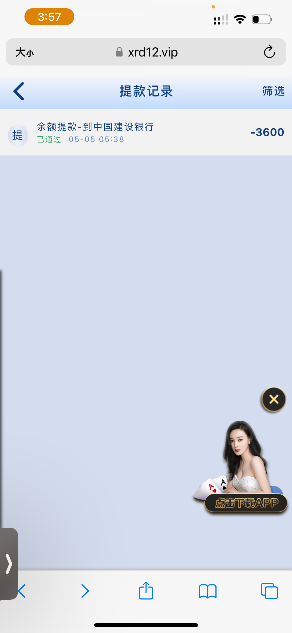 不说了 我上图 充值50 没打上 今天反水3快打上200 然后直接说我套利行为空汇200